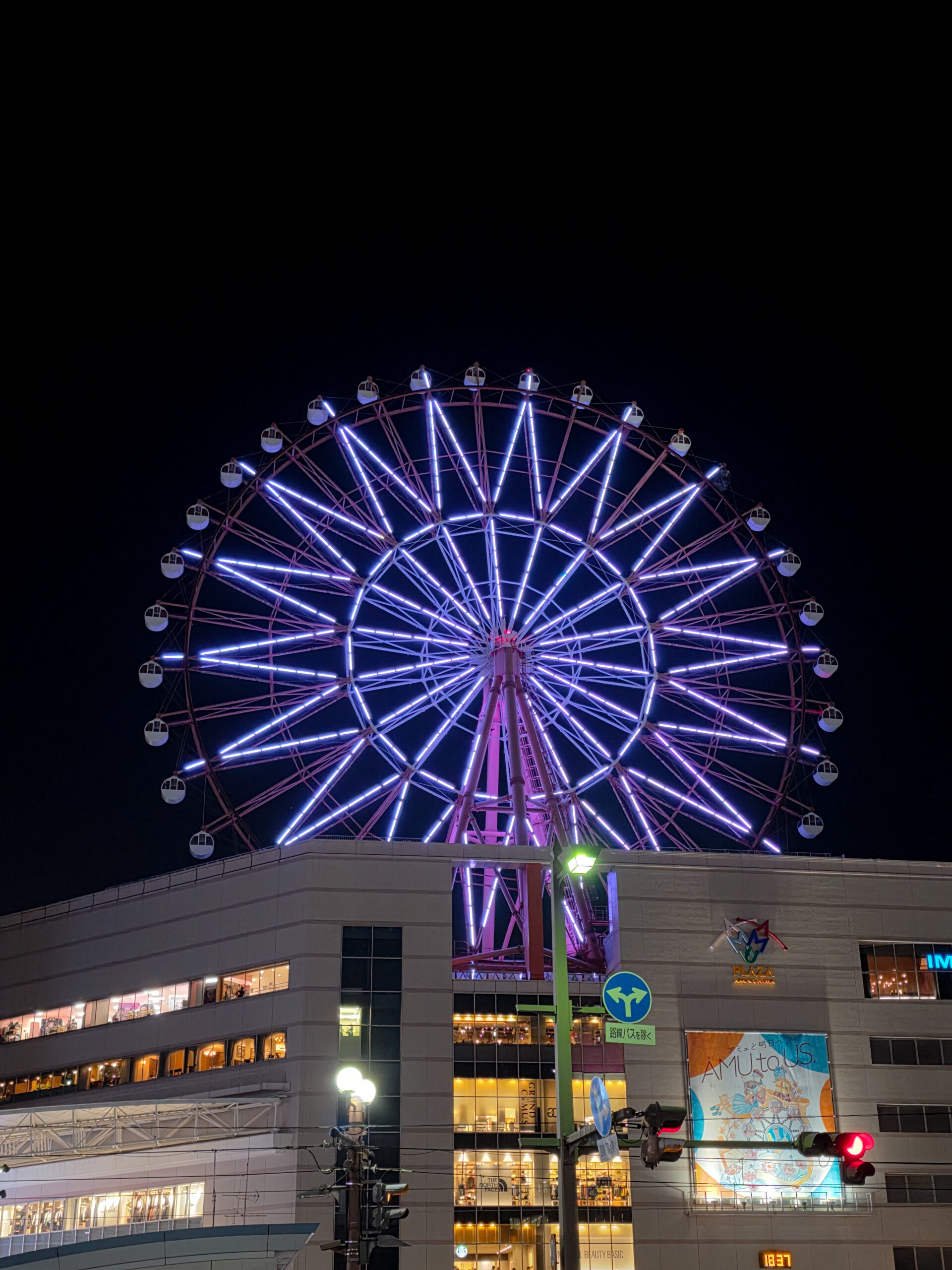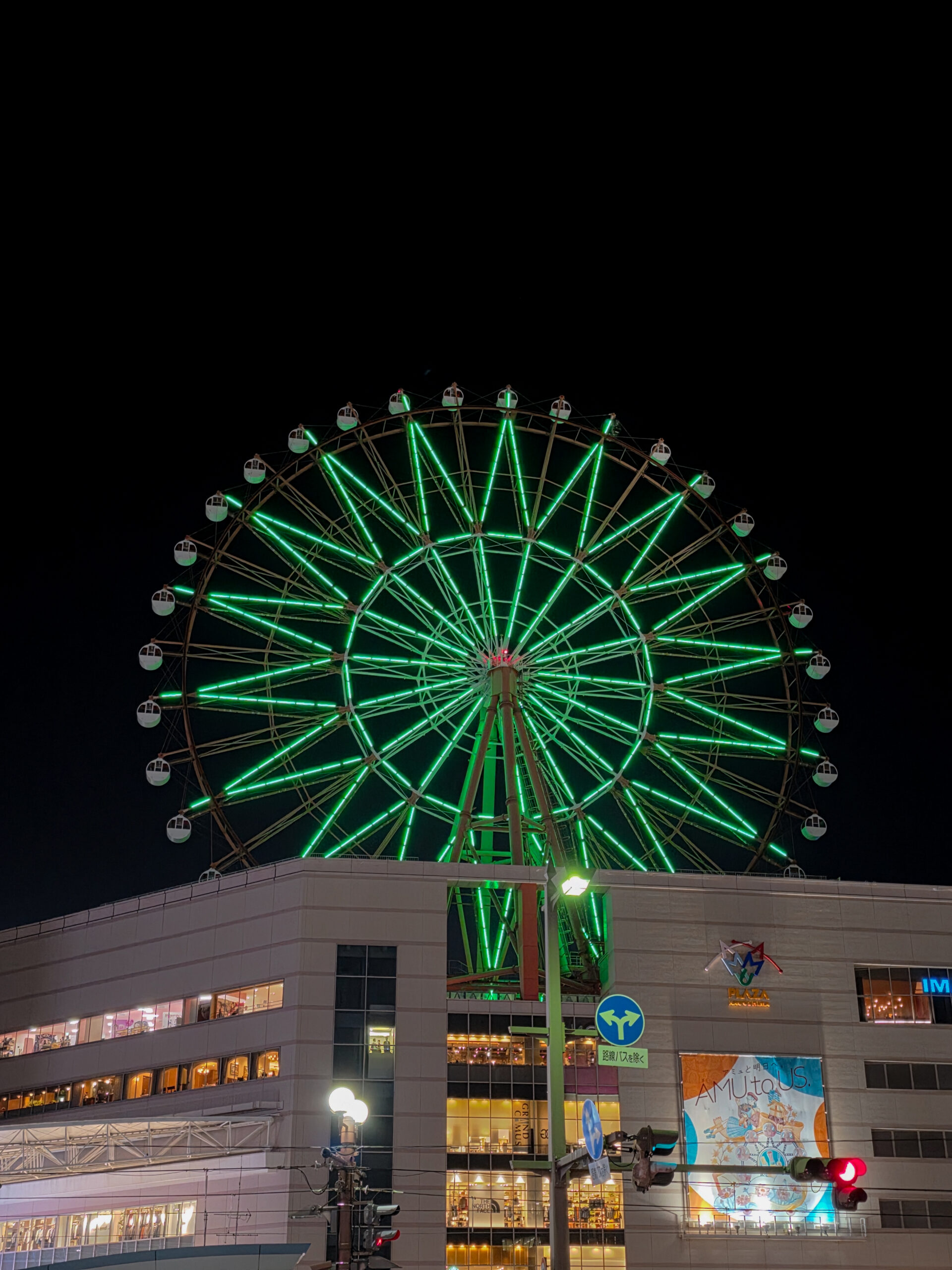 10月10日の世界メンタルヘルスデーに、シルバーリボン運動の一環で、鹿児島中央駅にある観覧車が、世界メンタルヘルスデーのシンボルカラーであるシルバーとグリーンにライトアップされていました。